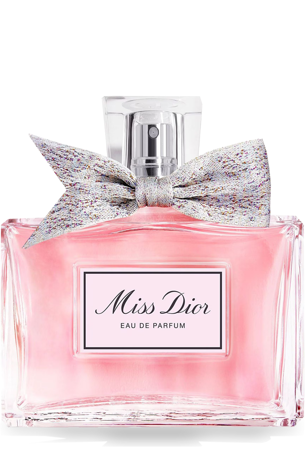 Miss Dior Eau de Parfum for women is like an olfactory «millefiori» where Centifolia rose, with its honeyed and peppery notes, reigns over a creamy velvet heart. It is embroidered with fresh lily-of-the-valley notes, an apricot-tinged peony accord, and powdery iris notes. The base notes of comforting vanilla and a hint of tonka bean encounter warm creamy sandalwood to create a sensual and long-lasting trail
